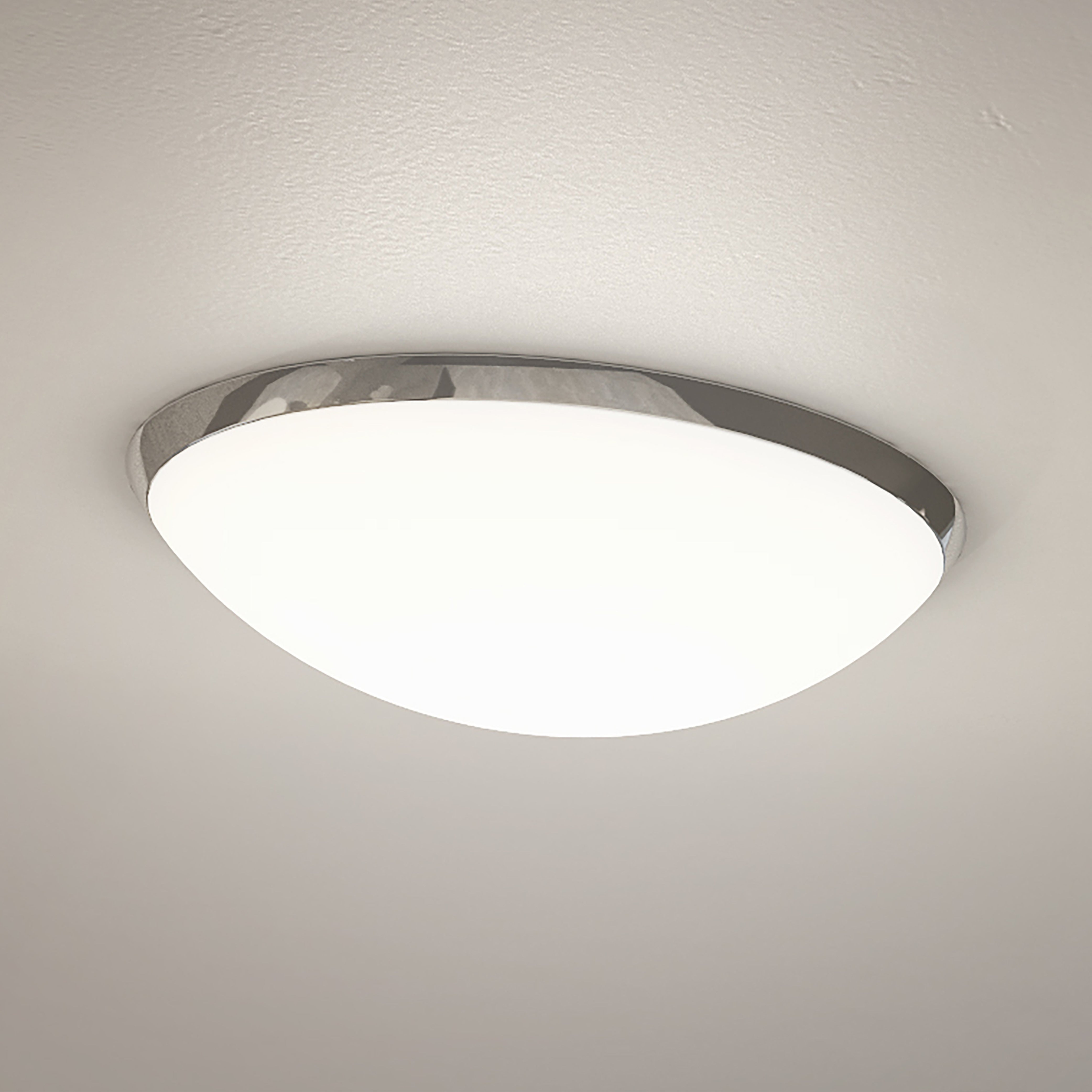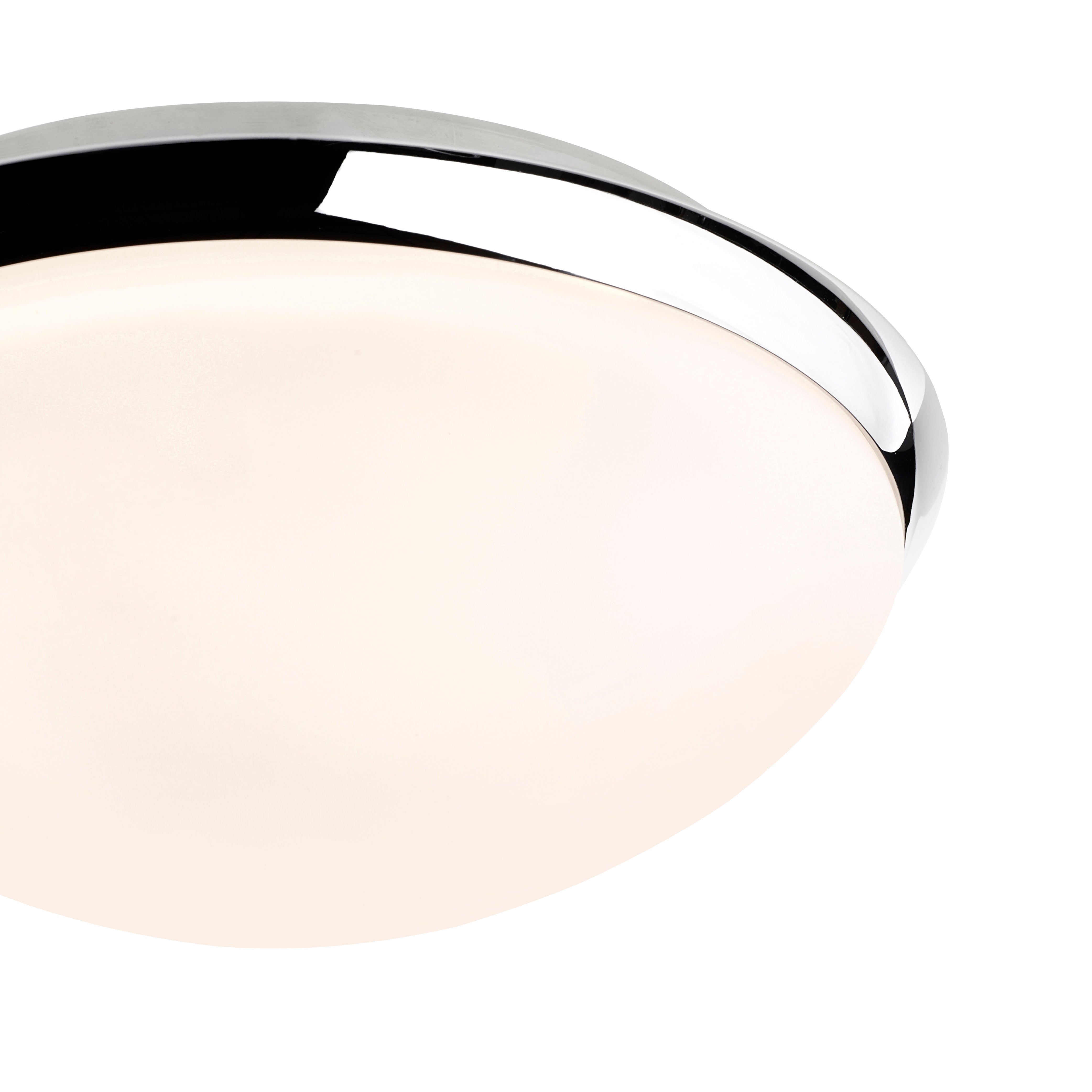 • This stylish fitting features a chrome ceiling plate and frosted glass diffuser, designed to provide superior illumination.