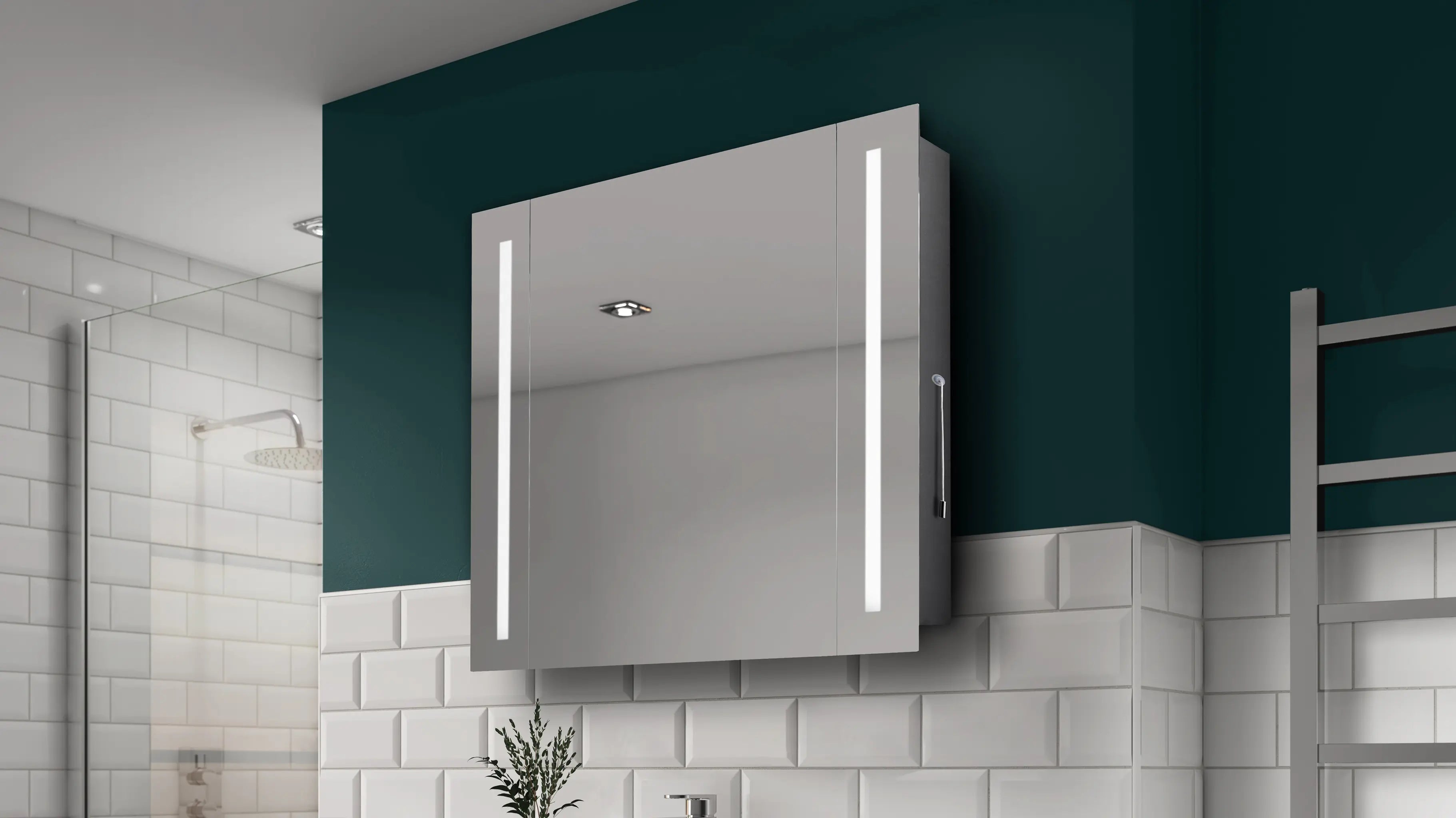 The Finlay Plus delivers a minimum fuss, practical cabinet in a stylish package. Straight to the point on-off control via a pull cord neatly located on the side activates the soft, cool white lighting.