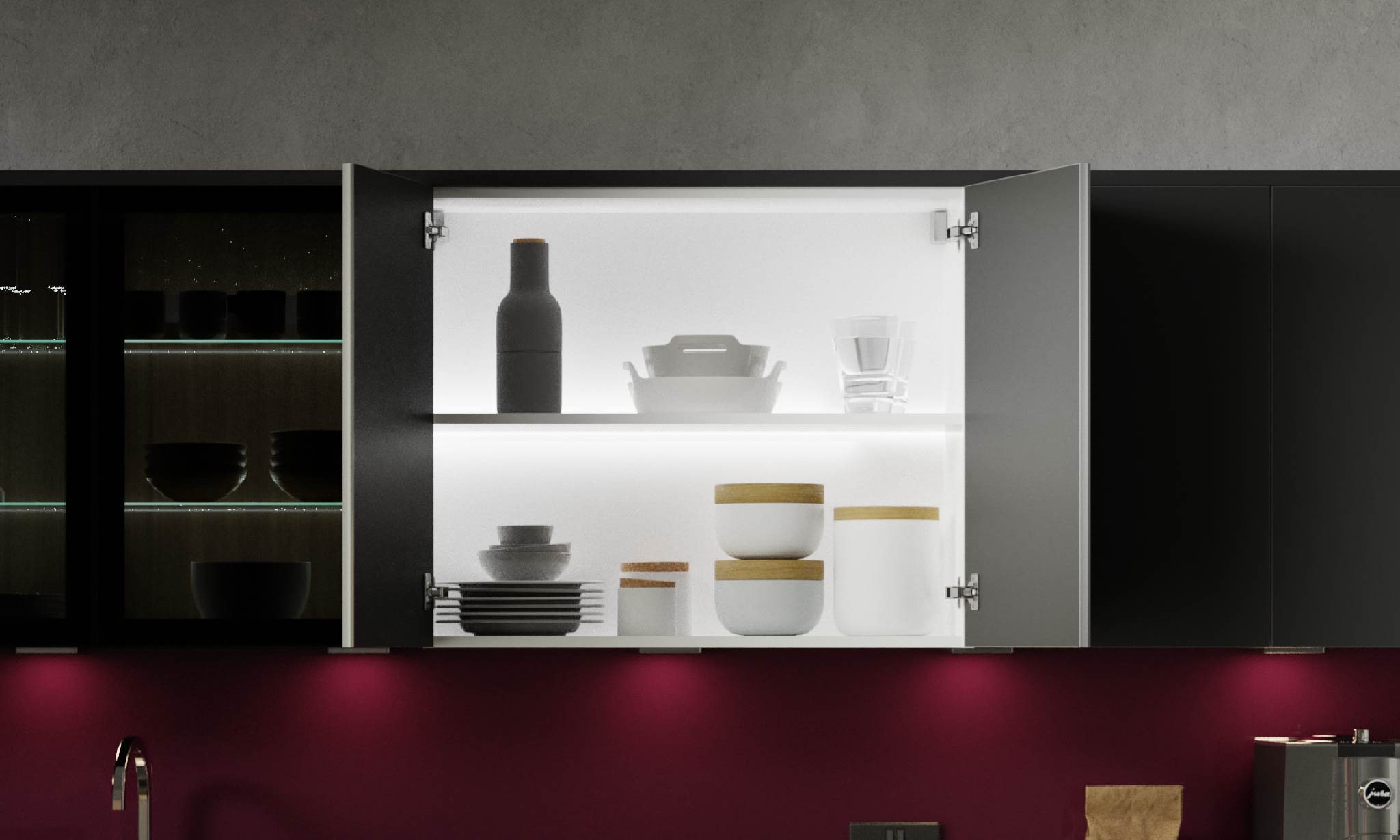 Cool white LEDs work well in cupboards where illumination serves a practical purpose.