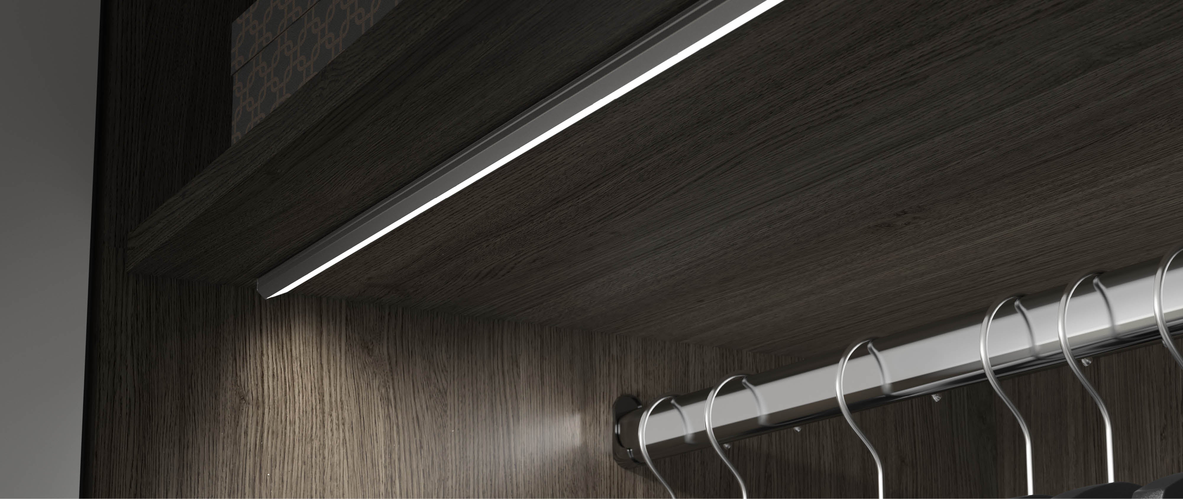 By pairing the Ray and Neutron together in one kit you can provide a fully diffused, angled, illumination to highlight key areas in wardrobes and cupboards.