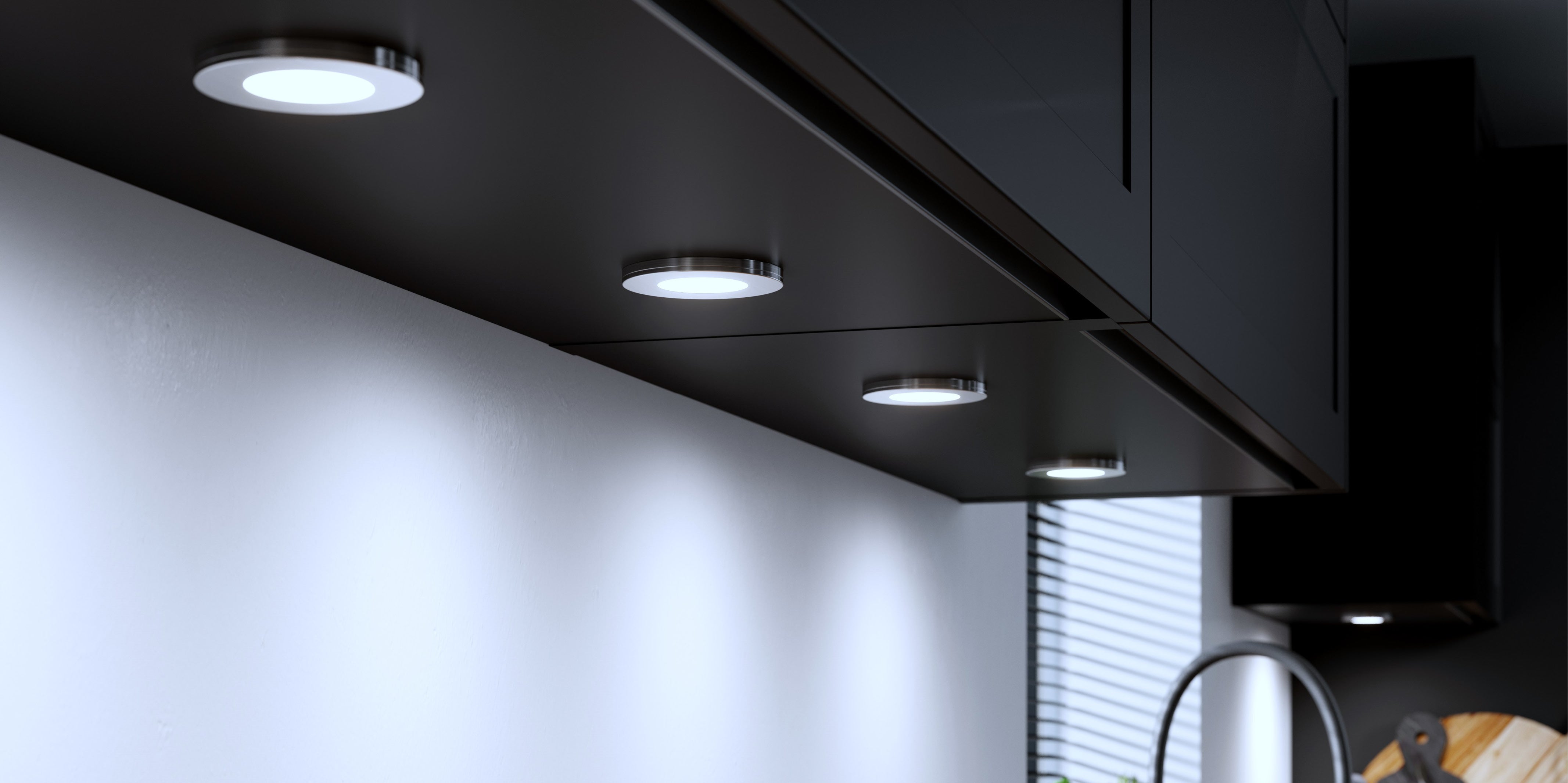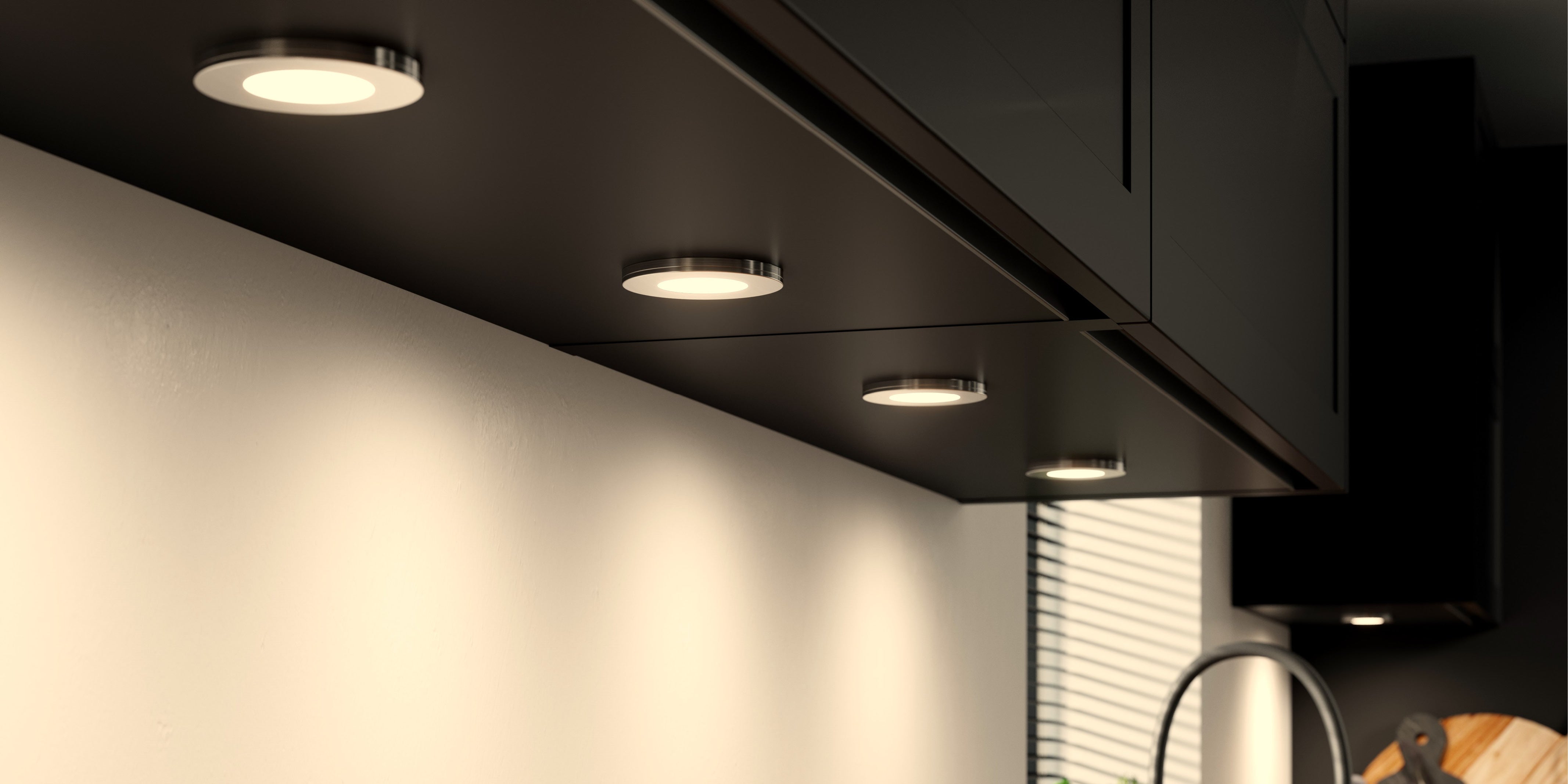 La fine profondeur de 7 mm de l'Apex TrioTone® améliore l'attrait visuel global lorsqu'elle est incorporée dans la conception sous l'armoire.