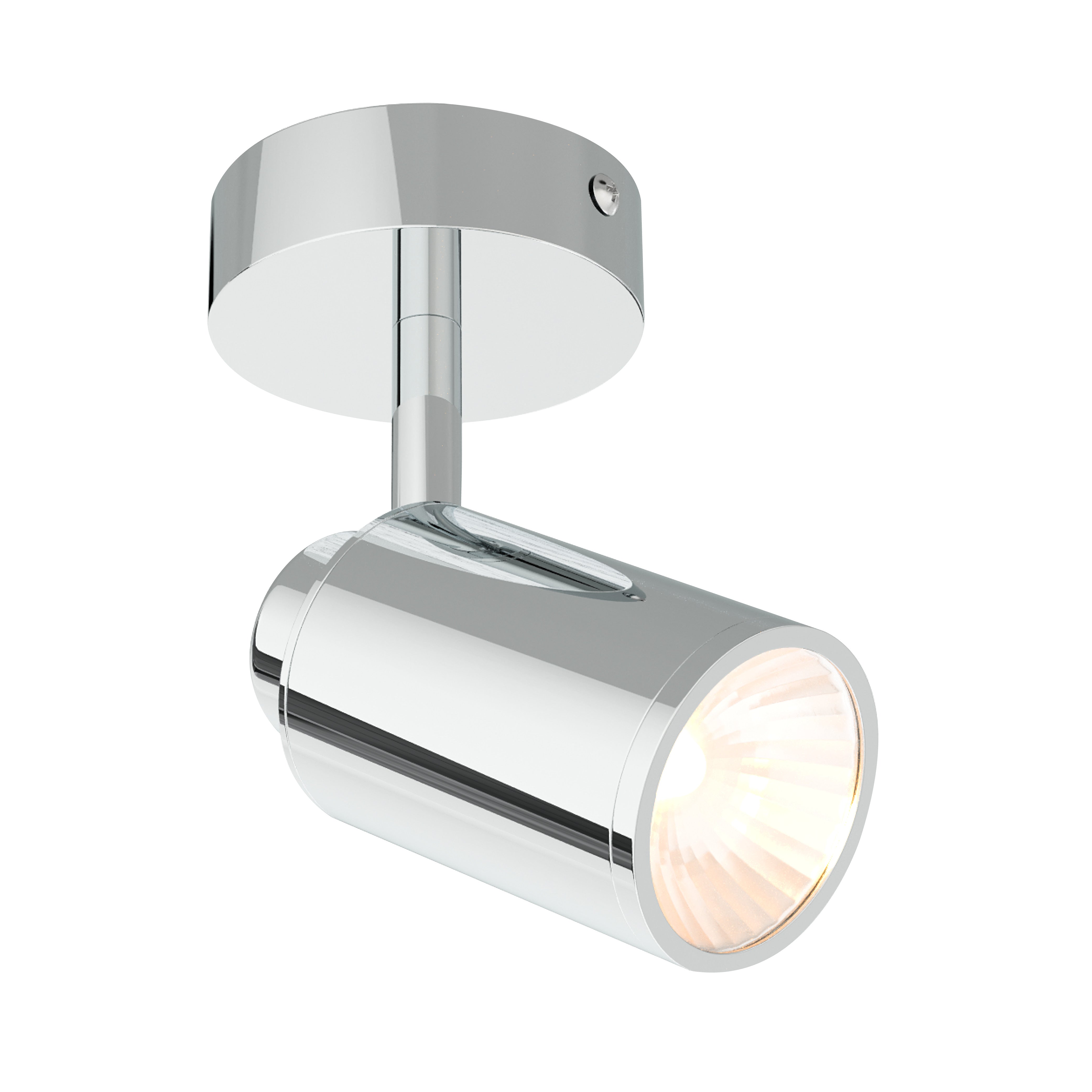 Spot de salle de bain finition chromée sur base circulaire avec tête orientable. Disponible en version spot simple ou triple spot. Nécessite des ampoules GU10 (ampoules non incluses).
