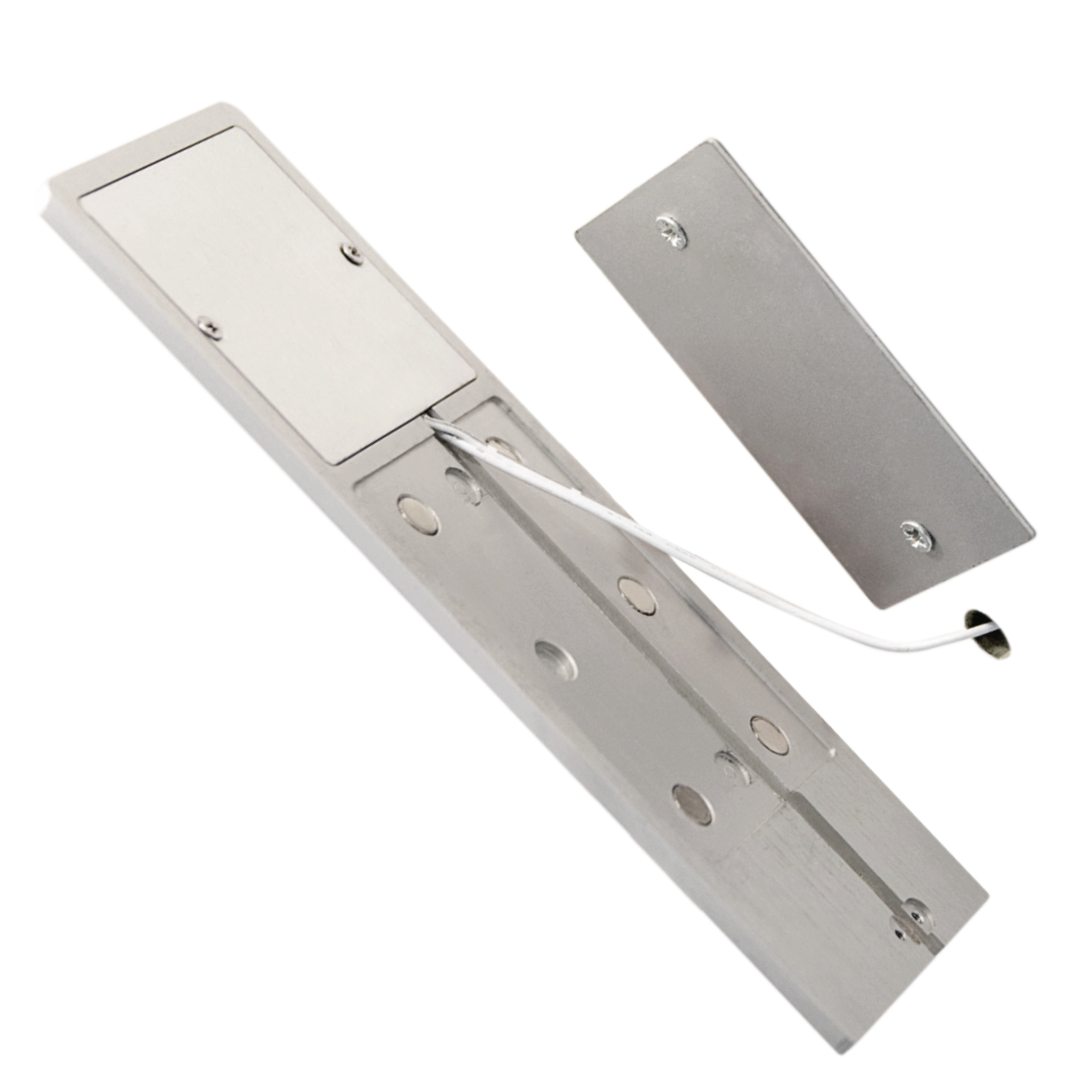 La plaque de montage magnétique assure une installation facile sur l'armoire et dissimule les fixations d'éclairage pour une finition soignée.
